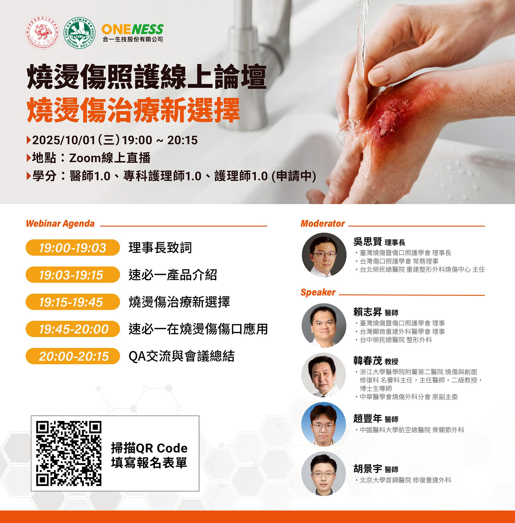 活動名稱:燒燙傷照護線上論壇-燒燙傷治療新選擇