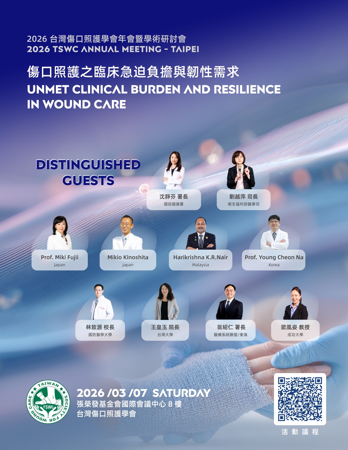 2026 台灣傷口照護學會年會暨學術研討會( 03/07活動議程 ) 發佈: 2026/02/23 2026年 台灣傷口照護學會年會暨學術研討會 時間:2026/03/07地點:張榮發基金會國際會議中心8樓 分類: 學會公告